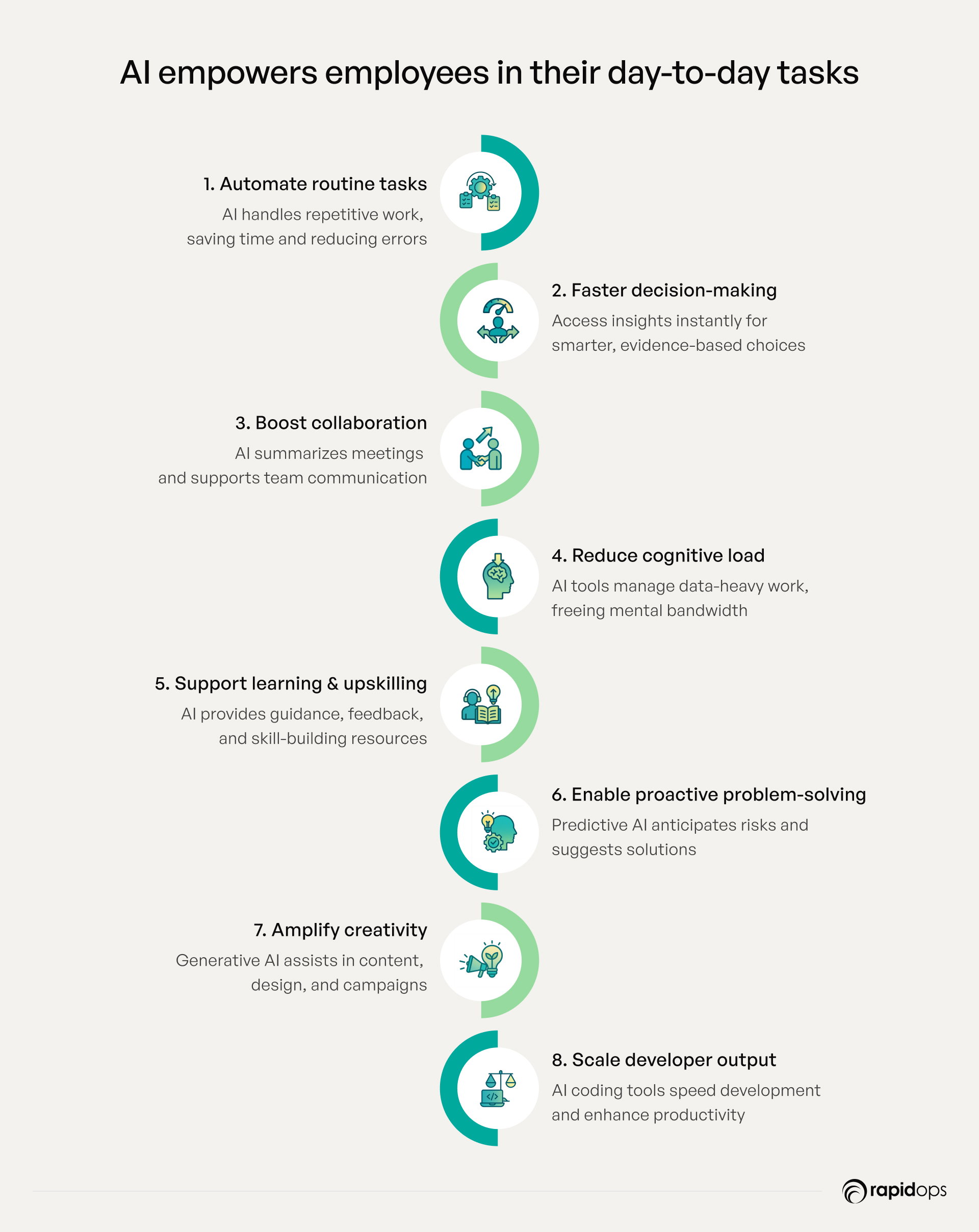 As AI adoption rises, employees increasingly view AI-powered assistants and enterprise AI platforms as productivity partners rather than disruptive tools (KPMG, 2025).