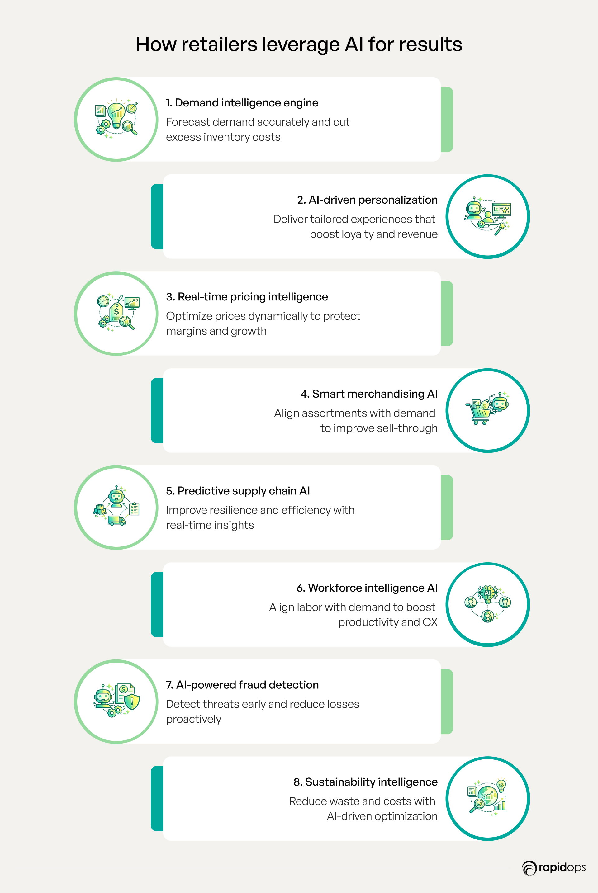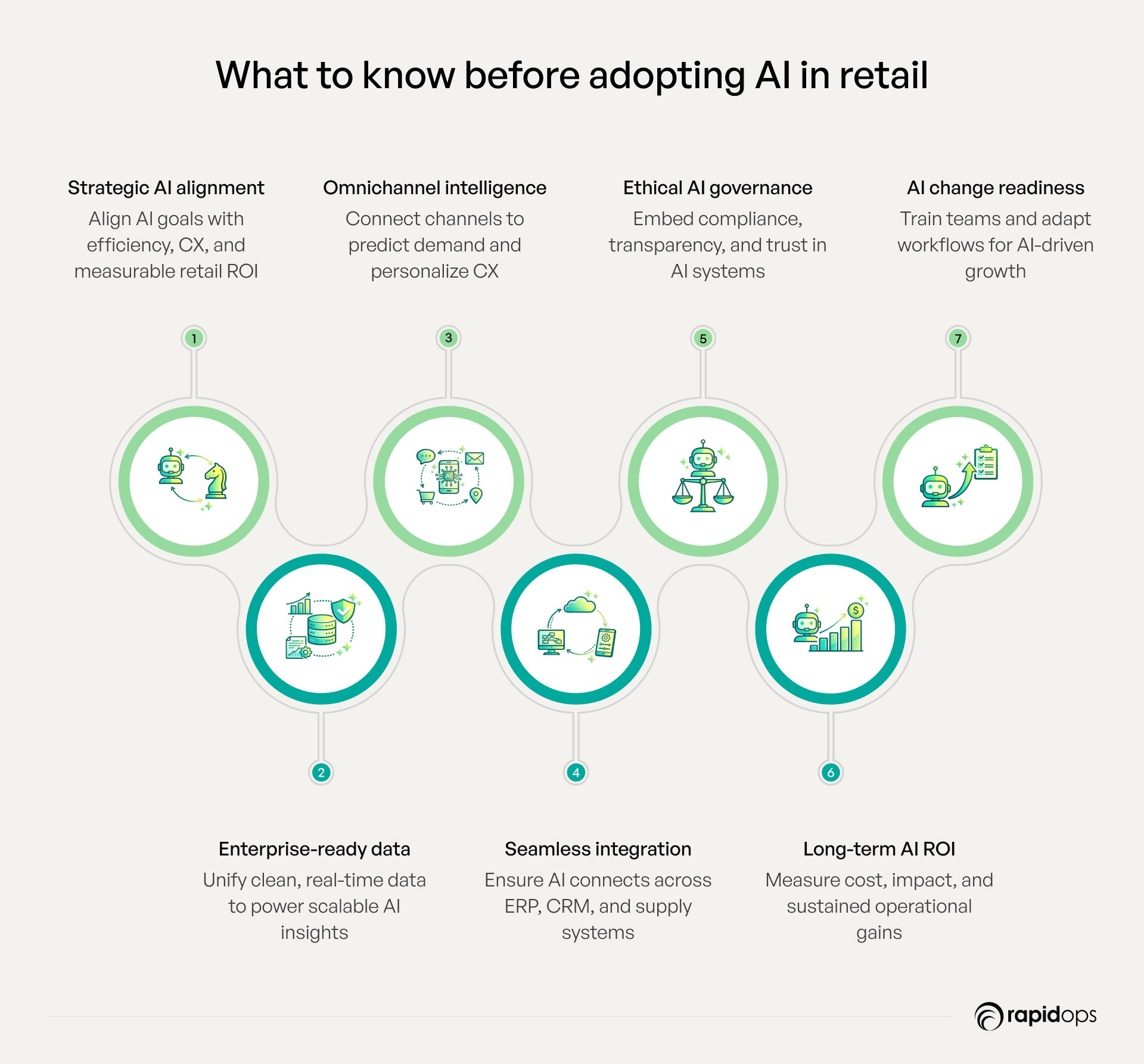 - Establish feedback loops so AI evolves with retail operations and customer behavior, driving long-term success.