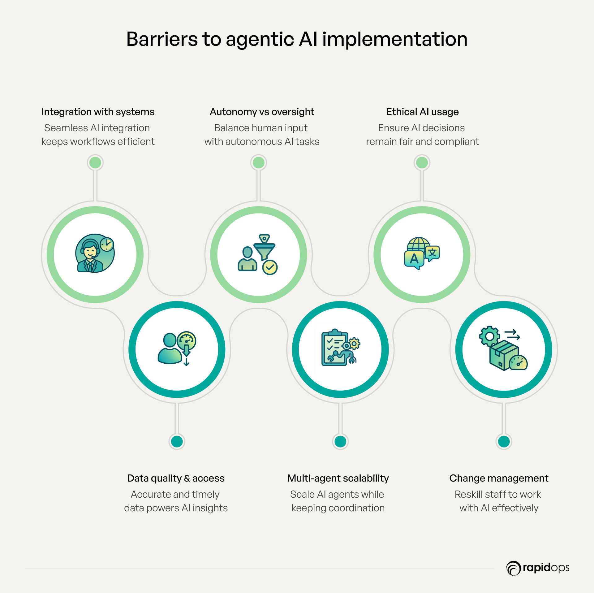 Seamless integration of agentic AI with legacy ERP platforms, cross-departmental workflows, and other AI systems is essential. Enterprises must enable multiple AI agents to communicate effectively with existing infrastructure to avoid operational disruption. Proper agent orchestration ensures that AI models function cohesively within core workflows, maintaining efficiency while enabling autonomous decision-making.