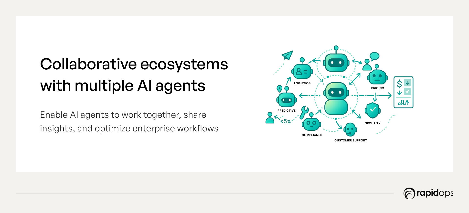 Building on autonomous workflows, multi-agent collaboration has become a core capability of agentic AI systems. In 2025, enterprises are increasingly witnessing AI agents working collectively across departments, orchestrating complex tasks with minimal human intervention. While adoption is still expanding, organizations that have implemented collaborative agentic AI ecosystems are already realizing measurable improvements in operational efficiency, responsiveness, and cross-functional alignment.