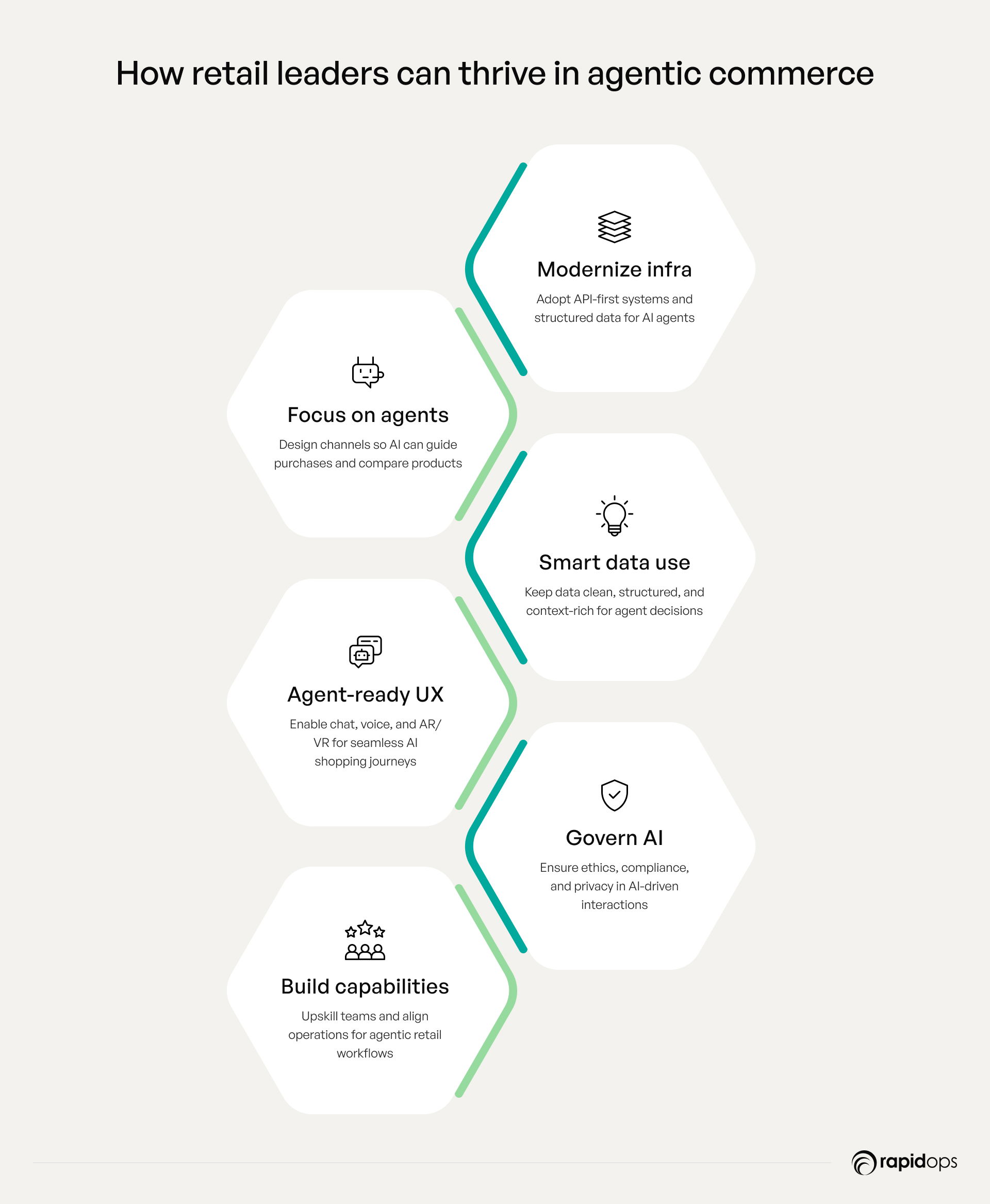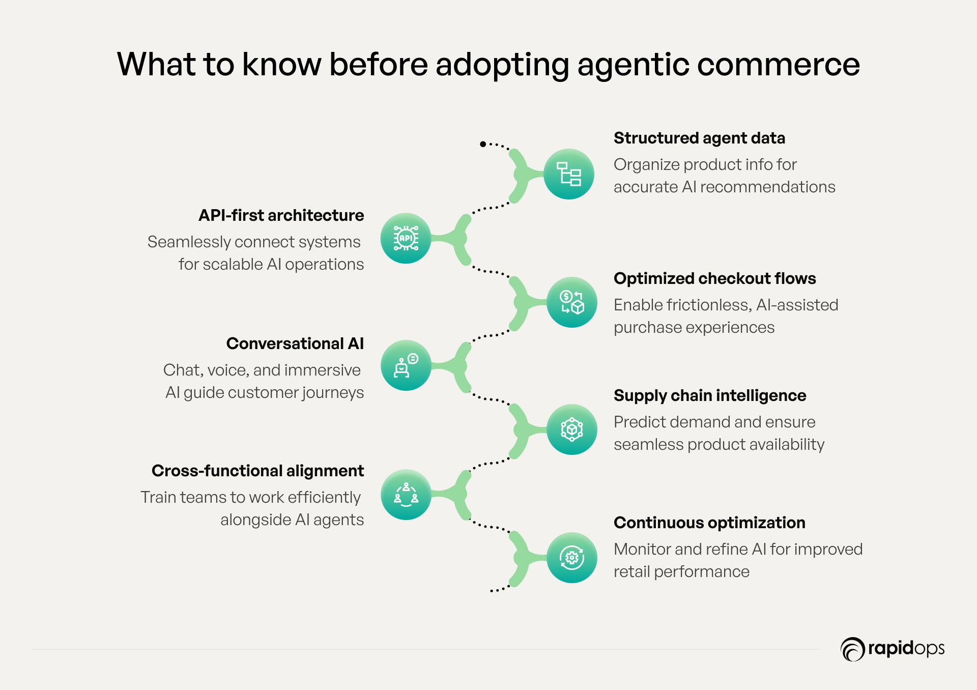 Adopting agentic commerce requires a thoughtful approach that balances technology, operations, and strategy to enable intelligent agents to create value, improve efficiency, and transform how businesses engage with customers.