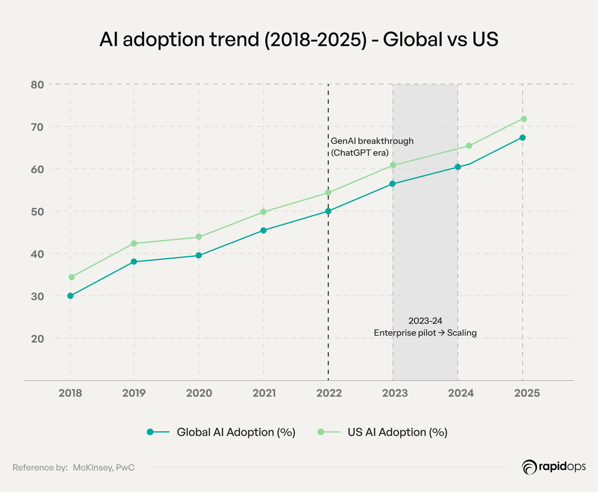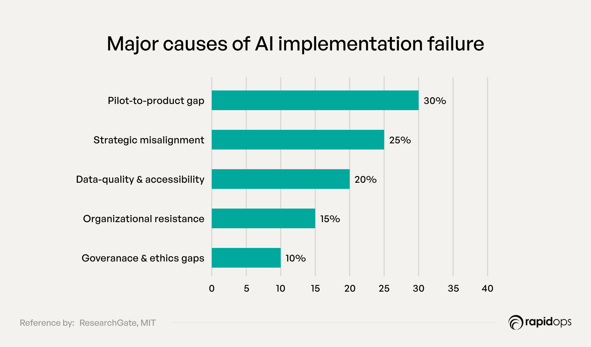 At Rapidops, we’ve worked side by side with organizations navigating these challenges. We’ve observed where AI projects hit roadblocks and, more importantly, how thoughtful interventions aligning workflows, designing resilient models, and empowering teams can transform pilots into enterprise-wide capabilities that deliver measurable impact.