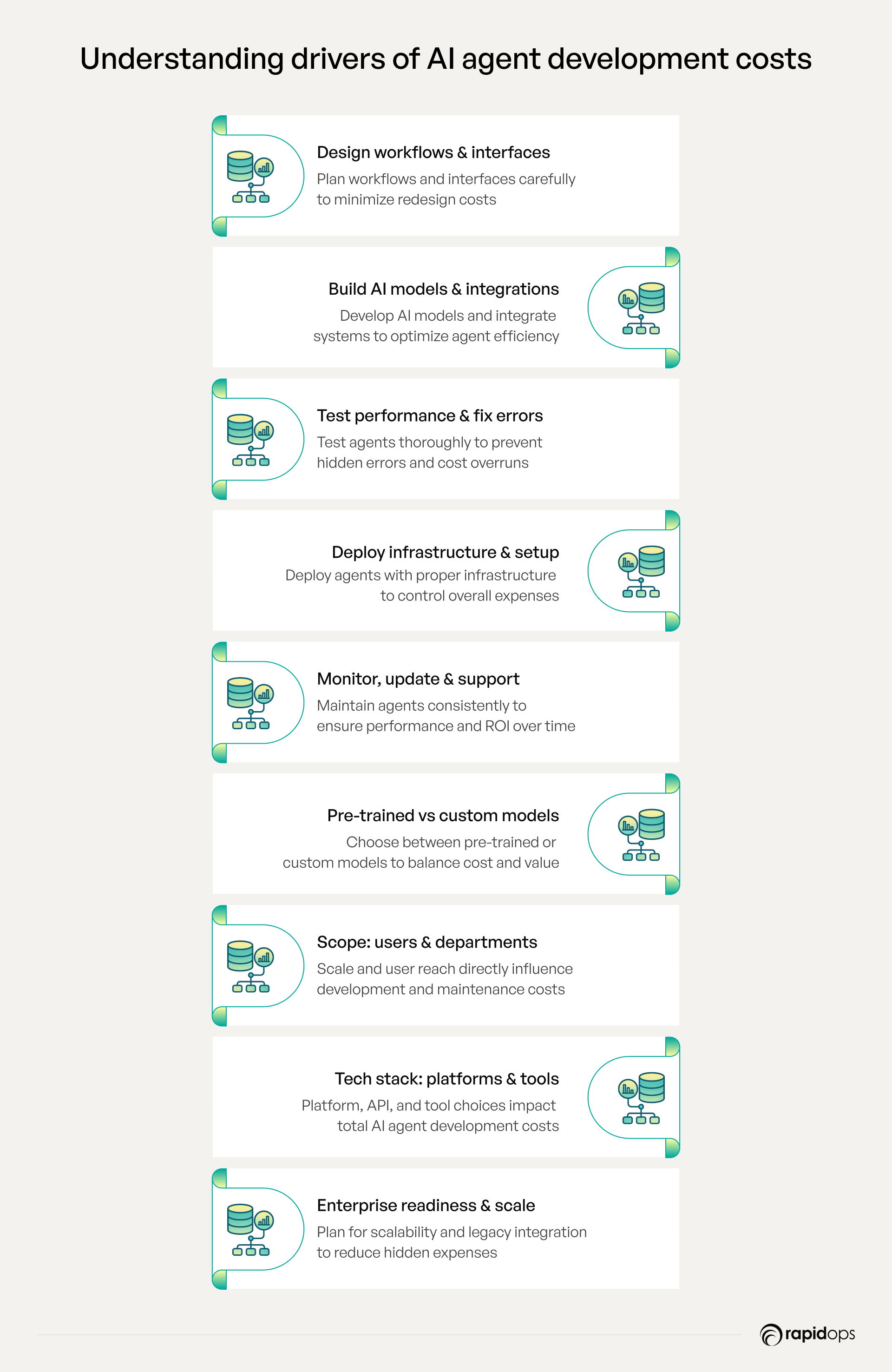 By understanding the requirements and cost factors associated with each agent type, enterprises gain clarity on the resources, infrastructure, and expertise needed for successful AI agent deployment. This understanding naturally leads to examining other factors beyond agent type that contribute to overall investment.