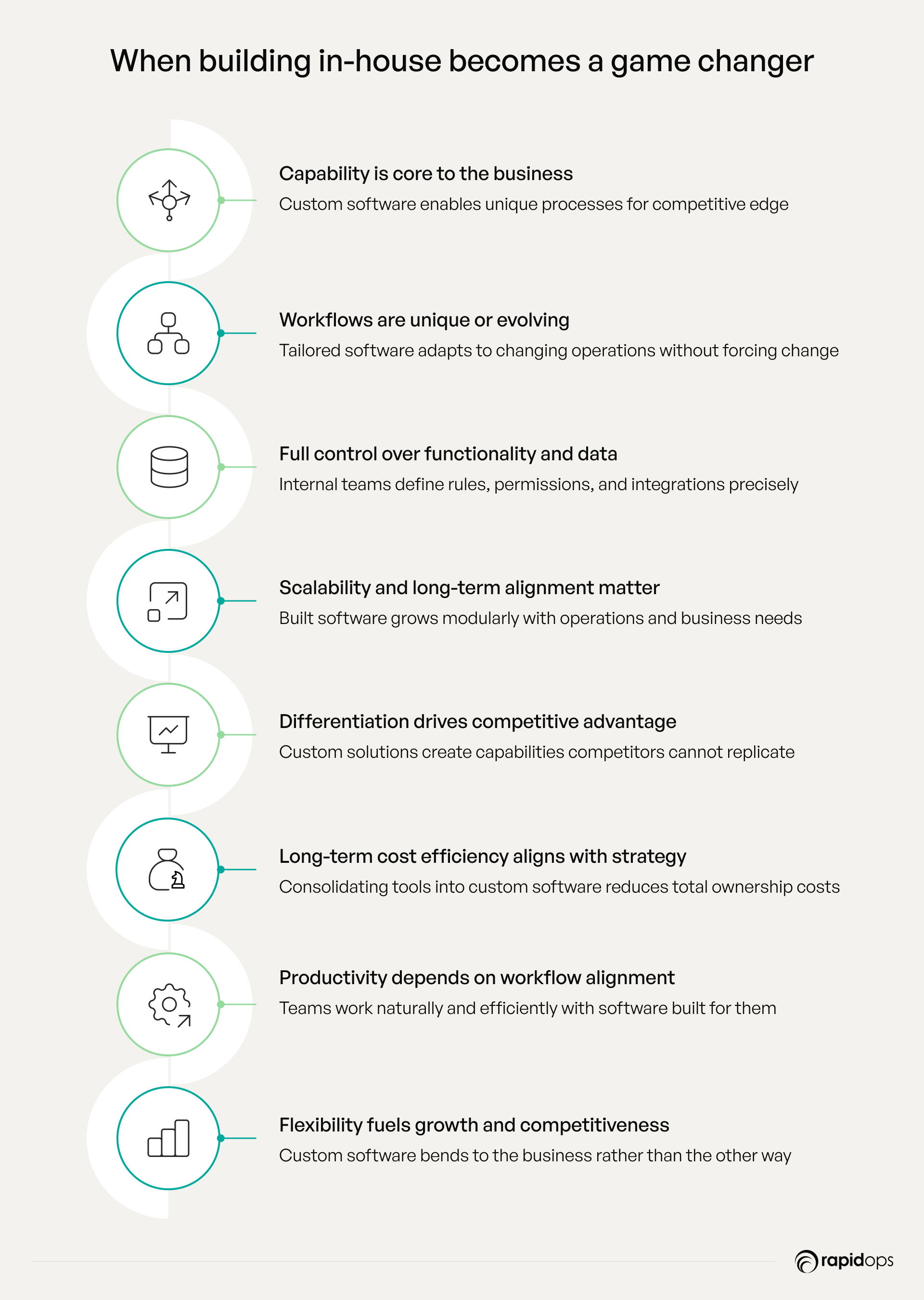 In short, Building software becomes a competitive advantage when the business requires flexibility, proprietary capabilities, workflow alignment, scalability, or strategic differentiation. In these scenarios, custom software bends to the business, not the other way around, ensuring that every investment directly supports growth, efficiency, and long-term competitiveness.