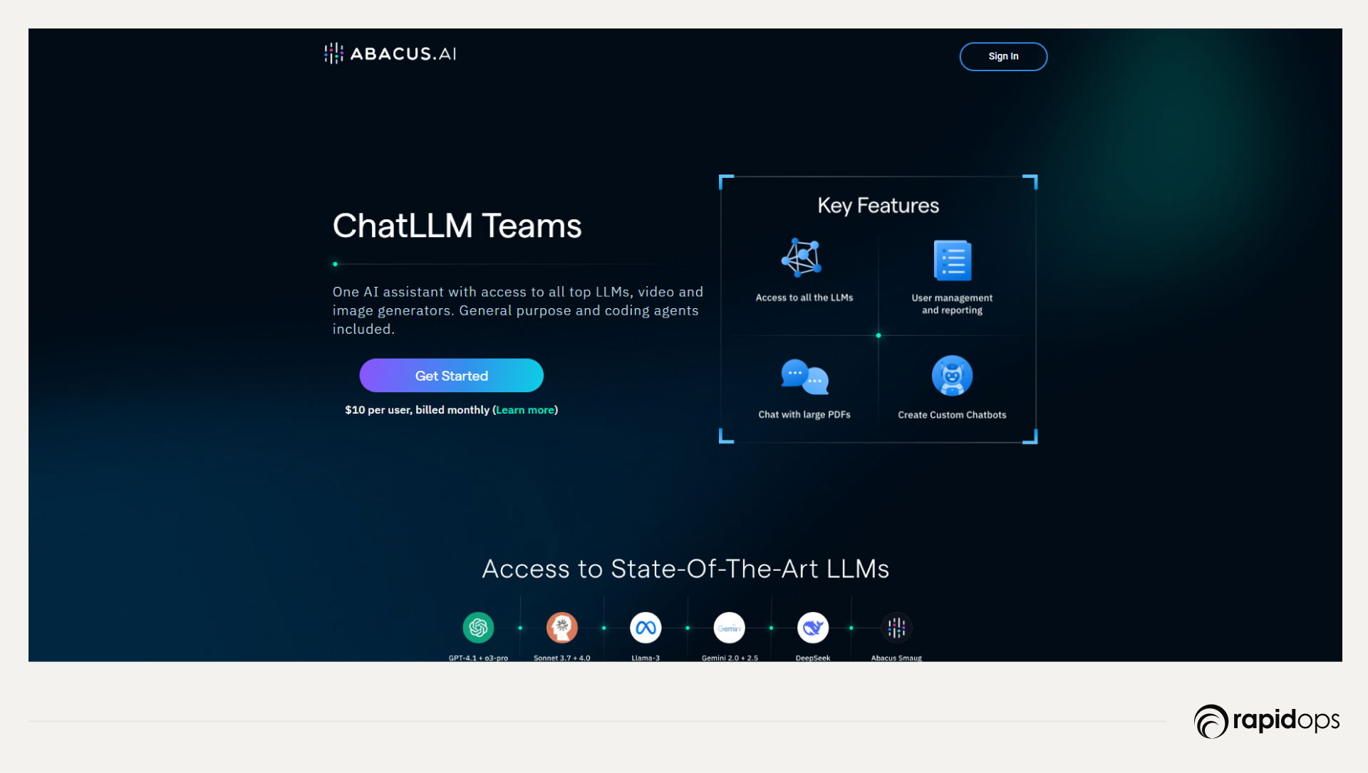 Abacus.AI is a U.S.-based generative AI platform and consulting company that empowers enterprises to develop, deploy, and govern generative AI systems at scale. With a strong foundation in MLOps and LLMOps, it supports SaaS, eCommerce, and BFSI clients in transforming workflows and customer engagement.