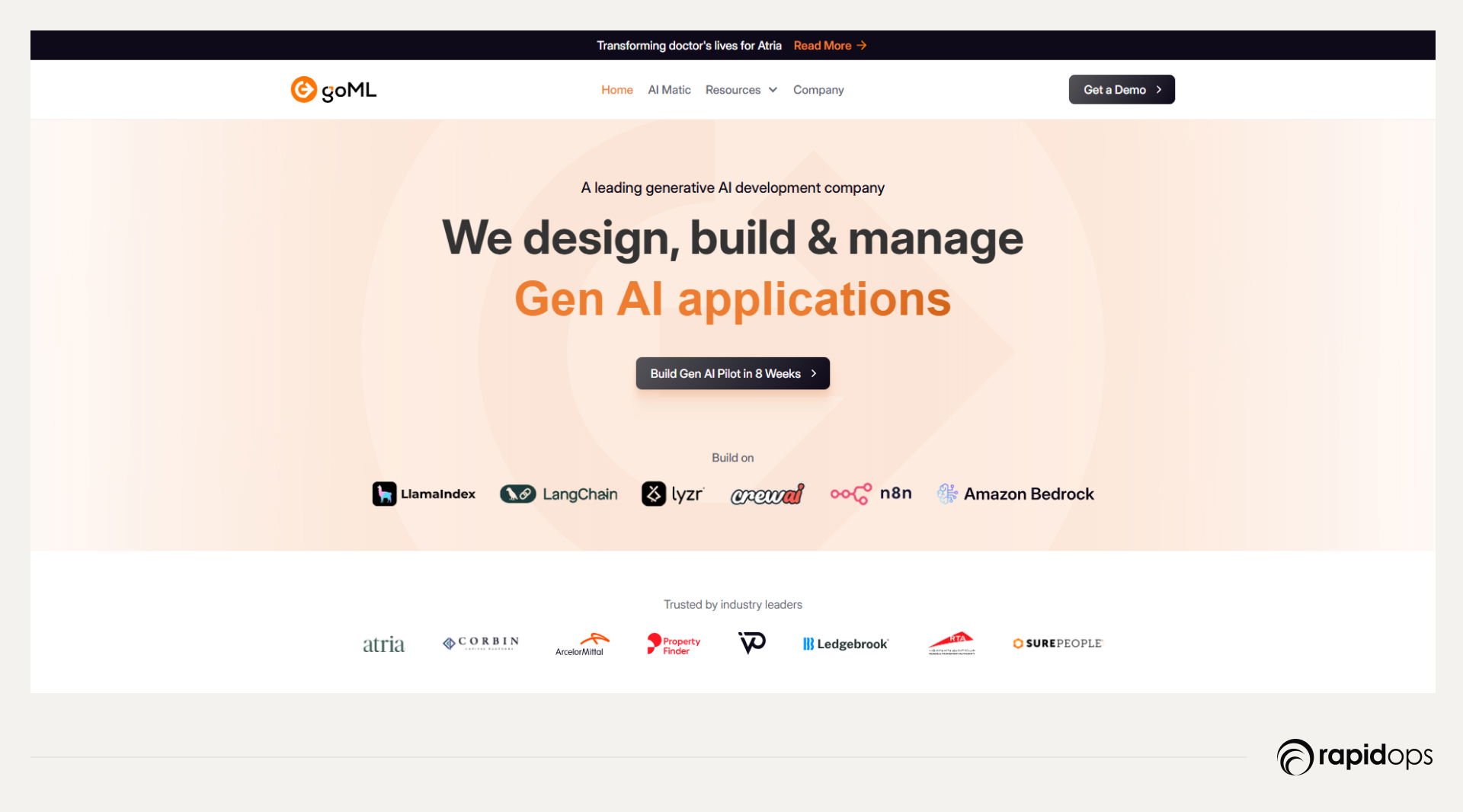Rapidops is a U.S.-based generative AI-powered business transformation company helping mid-sized to large enterprises adopt and operationalize generative AI capabilities tailored to their business. With 16+ years of experience across industries like retail, manufacturing, and distribution. Rapidops delivers strategy-to-deployment execution for enterprise-scale solutions that drive intelligent automation, next-gen personalization, and predictive insights. Its focus is not on general AI, but purpose-built generative AI development solutions that unlock measurable outcomes in customer experience, efficiency, and intelligence.