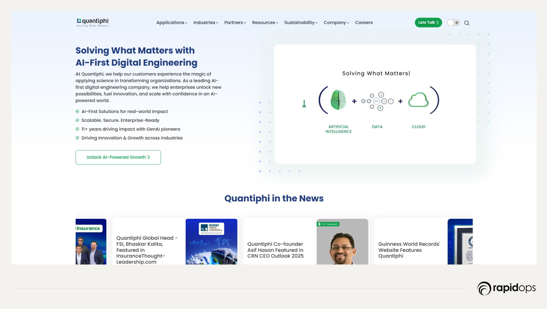 Quantiphi is a digital engineering and AI-first consultancy that helps growth-focused and large enterprises accelerate generative AI transformation. With global teams and deep experience across insurance, retail, healthcare, and public sector domains, the firm specializes in building scalable, cloud-native generative AI systems.