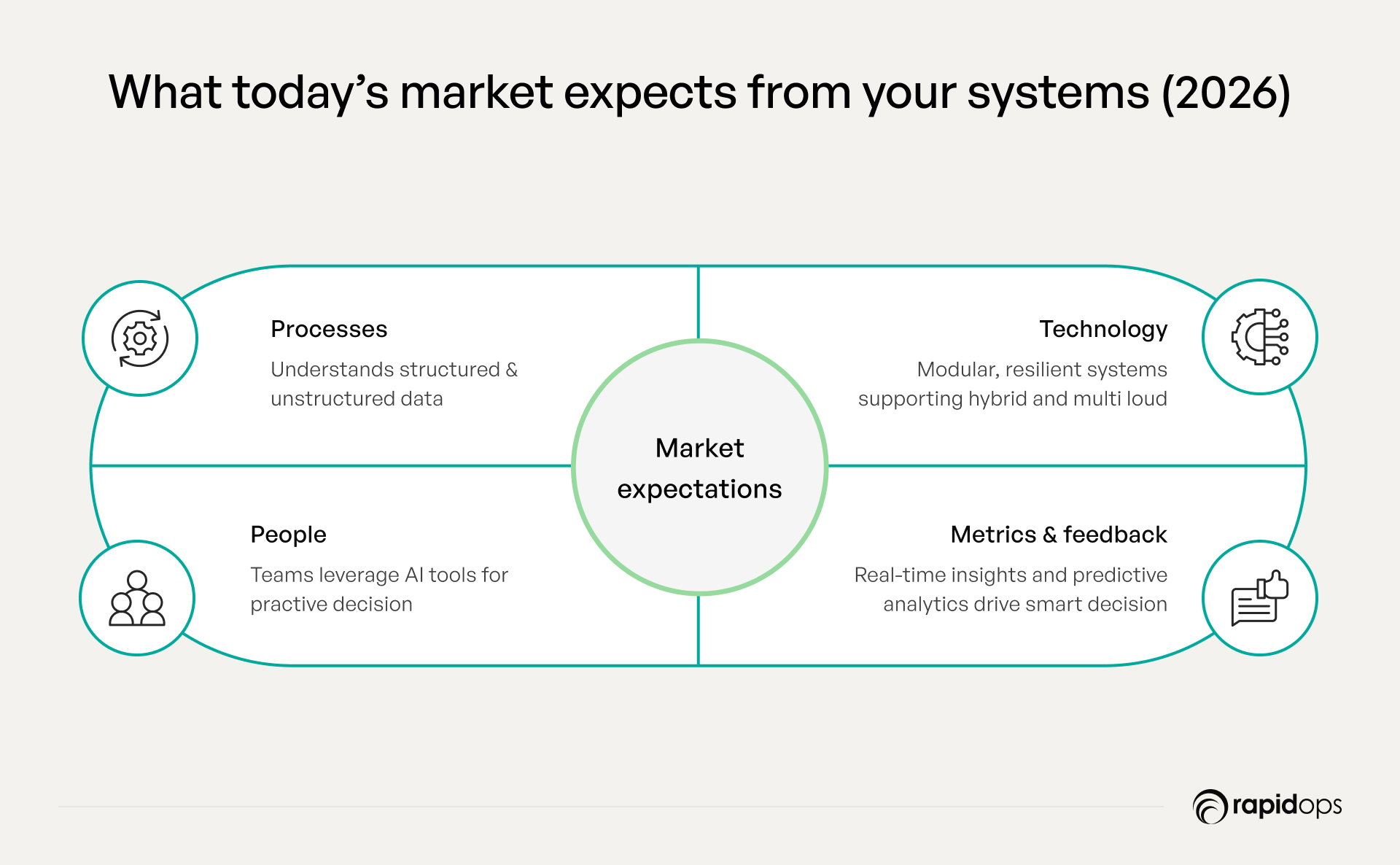 In essence, today’s market expects systems that are fast, reliable, adaptive, and intelligently managed across all dimensions: people, processes, technology, governance, and feedback.