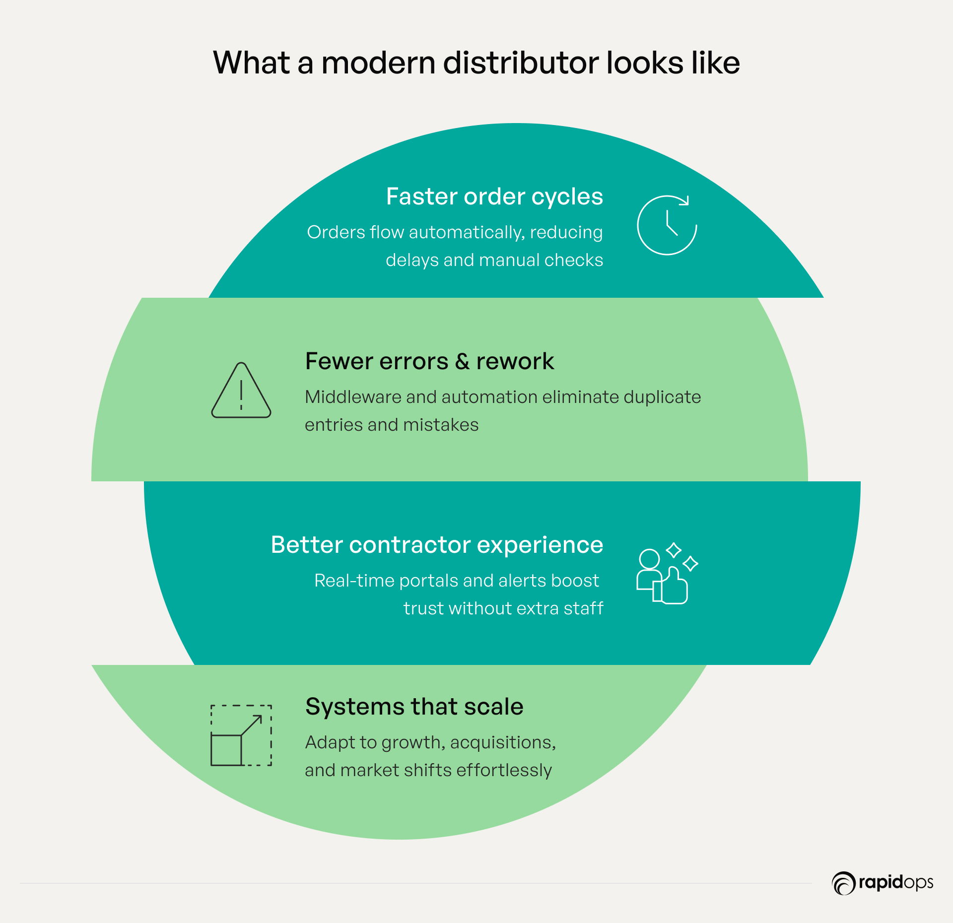 By implementing modernization initiatives alongside daily operations, distributors can improve order accuracy, visibility, and scalability without ever risking downtime or contractor dissatisfaction. Modernization becomes a controlled, measurable, and strategically aligned process, enhancing efficiency, protecting margins, and positioning the business for sustainable growth.