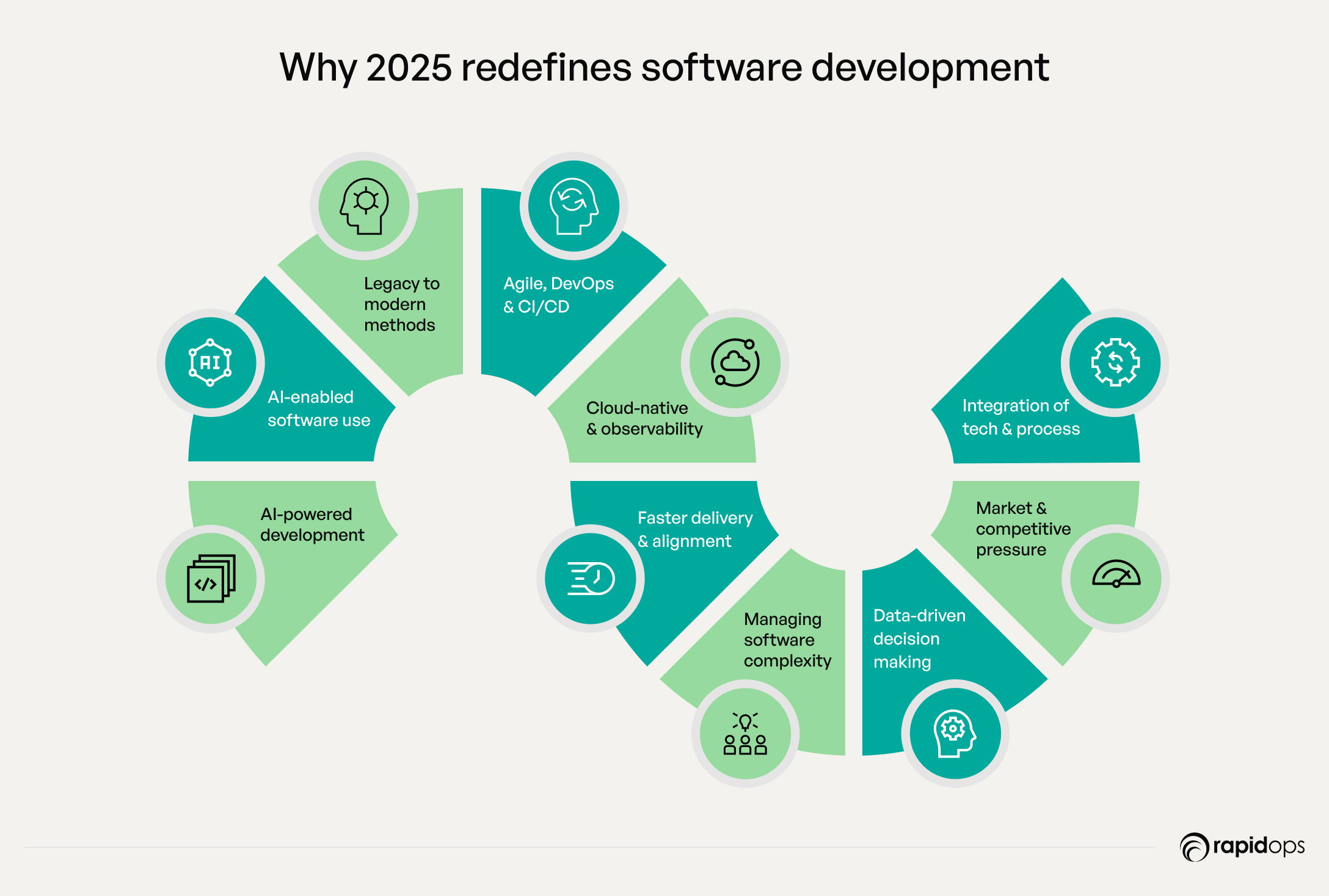 2025 ushers in a new era of software development, where success depends on rethinking how software is planned, built, and delivered. Companies that adapt to projects can turn into growth engines and sustain a competitive edge in an increasingly complex landscape.