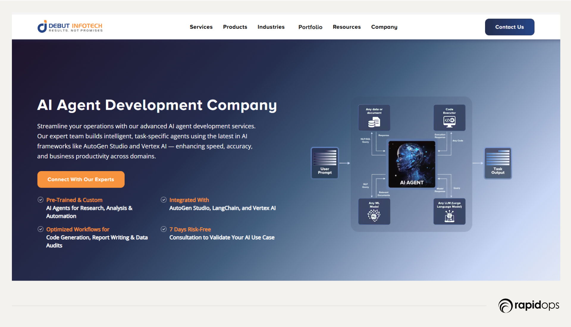 Debut Infotech combines deep technical expertise with enterprise domain knowledge, enabling AI agents to autonomously manage complex workflows while interpreting large-scale data. Their solutions are highly scalable, reliable, and adaptive, helping enterprises reduce operational bottlenecks, improve resolution times, and enhance both employee and customer experiences.