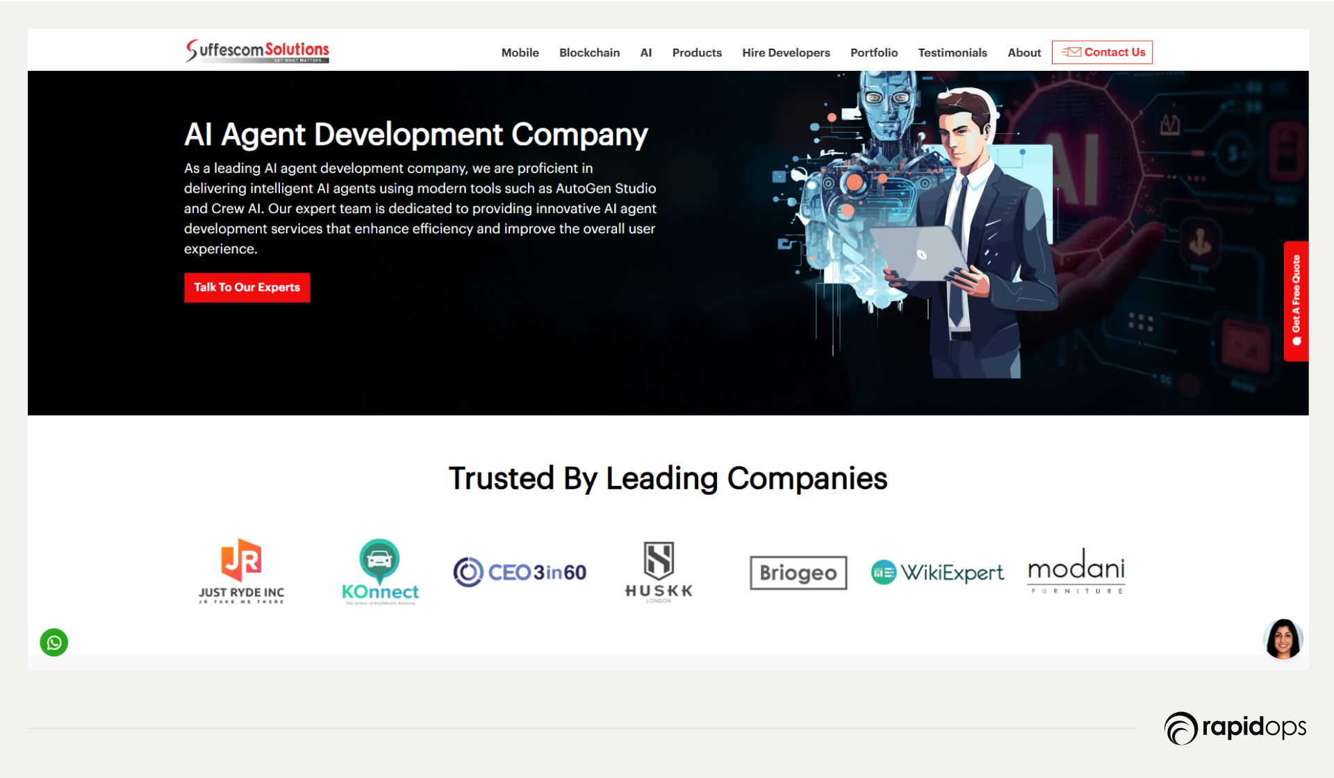 Rapidops differentiates itself through a fully agile, end-to-end approach. Their AI agents continuously learn and evolve, proactively optimizing workflows and addressing enterprise-specific needs. By combining domain expertise, adaptive AI design, and enterprise system mastery, Rapidops transforms routine processes into strategic operational advantages, delivering tangible business outcomes and enabling organizations to achieve faster, more reliable results.