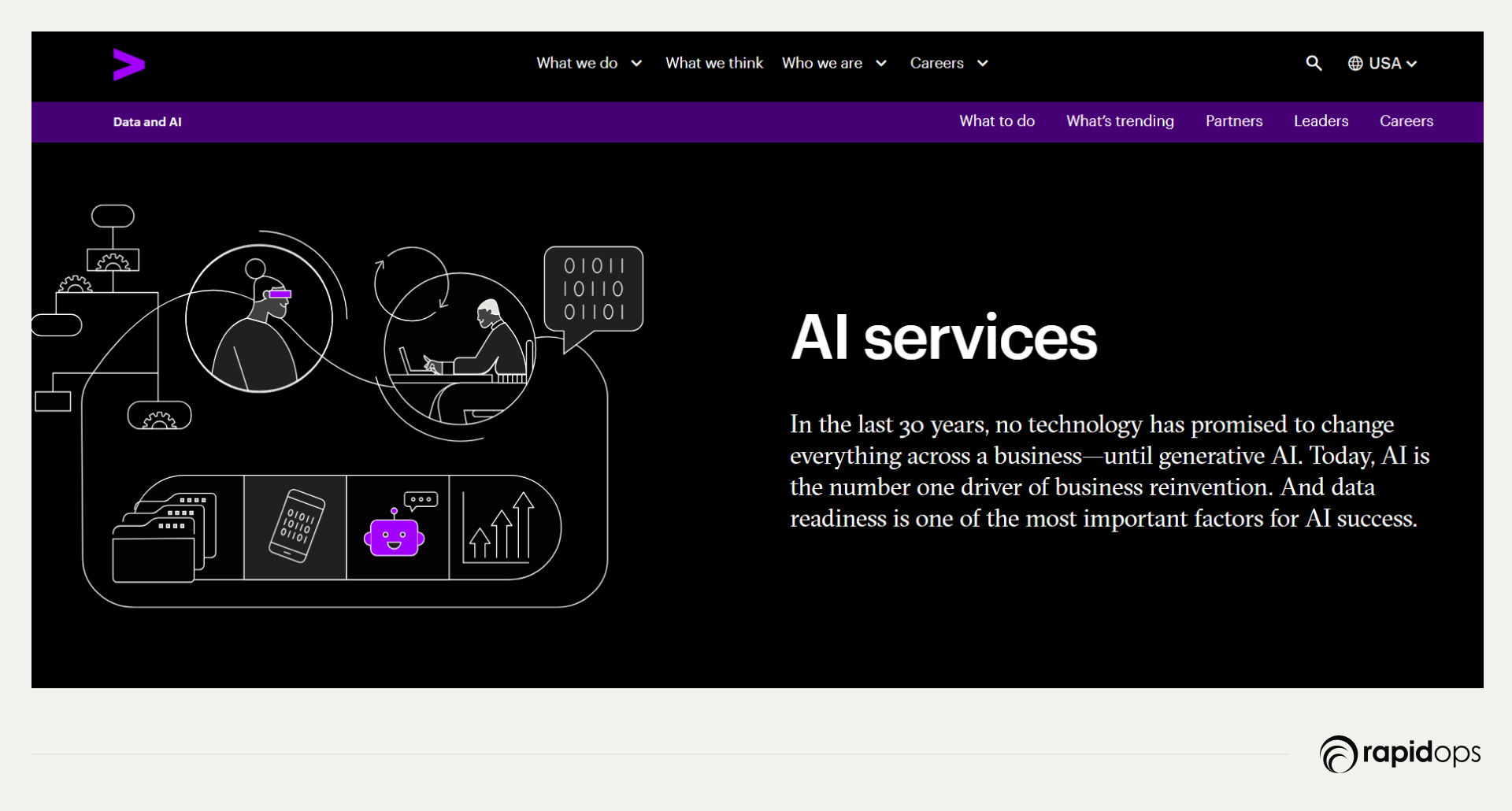 Accenture is a global leader in AI development, helping organizations integrate artificial intelligence and intelligent systems into core operations. Recognized among the top AI development companies, Accenture delivers custom AI solutions, machine learning models, natural language processing systems, and generative AI applications that produce measurable business outcomes. Their approach ensures AI initiatives are scalable, sustainable, and aligned with enterprise goals.