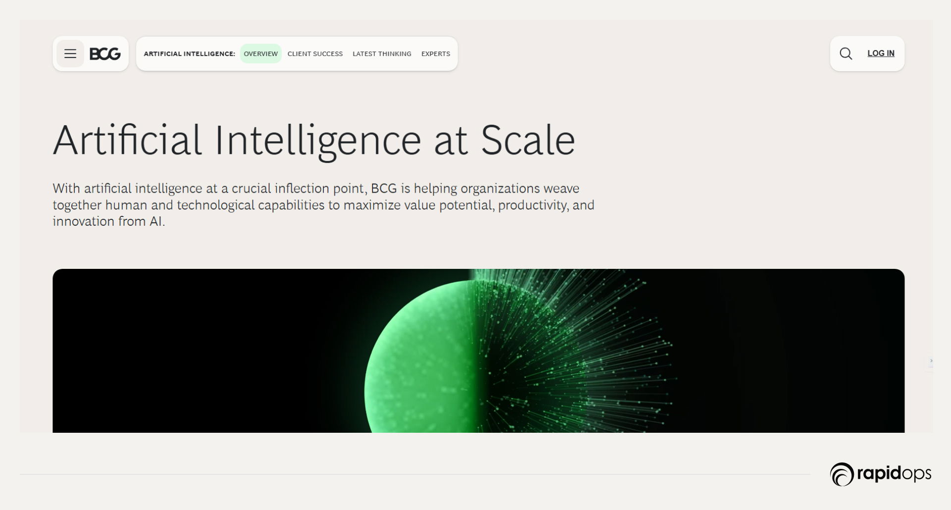 - AI implementation and scaling: From pilot projects to full-scale deployment, BCG ensures seamless integration of AI solutions into existing systems and processes.