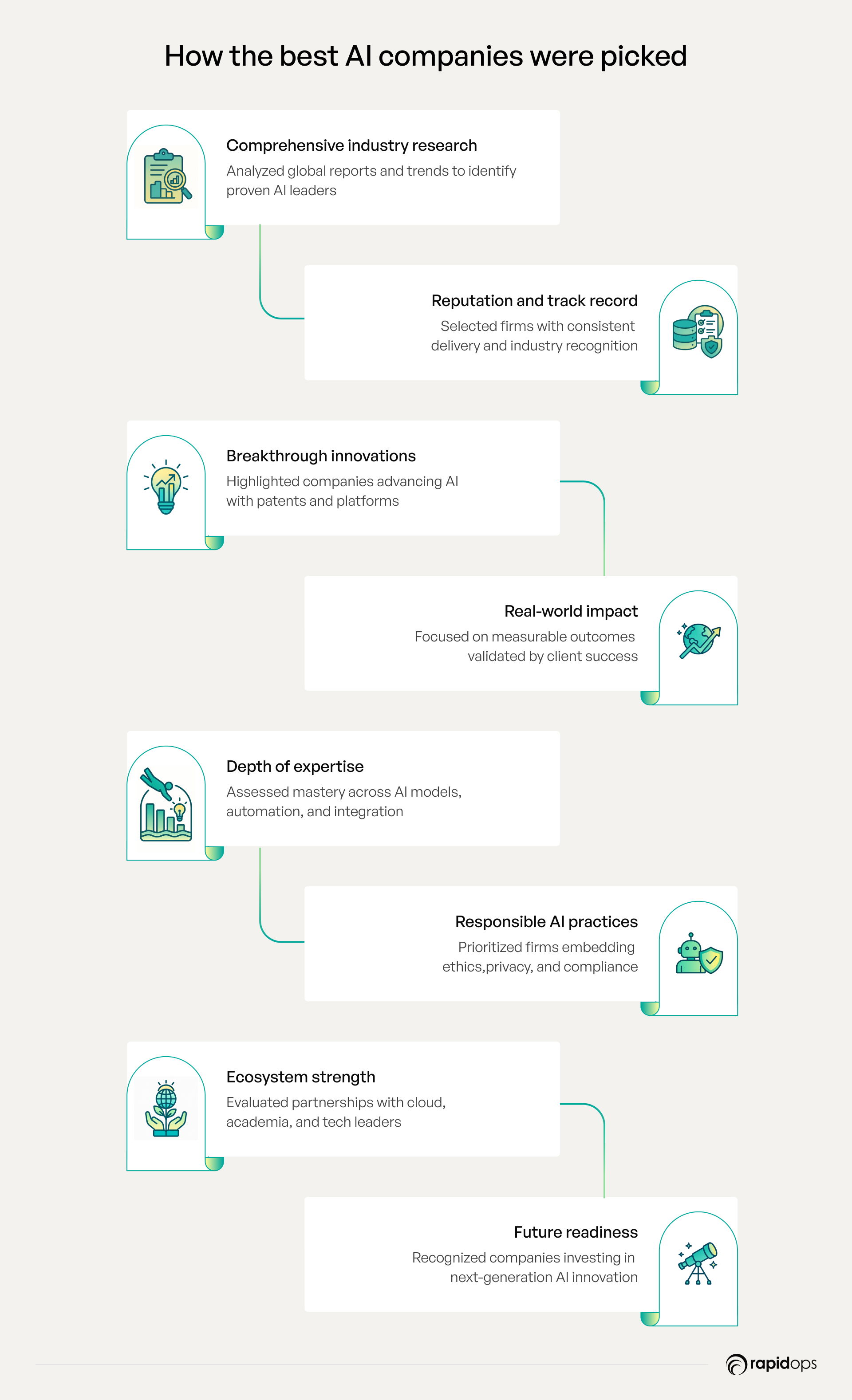 Choosing the right AI development company can shape the success of your AI strategy, but not all companies deliver the same value. That’s why we went beyond surface-level claims and designed a rigorous, transparent process to identify the top AI development companies redefining innovation, ethics, and real-world impact. What follows is a clear view of how each made the cut, so you can navigate the crowded AI market with confidence.
