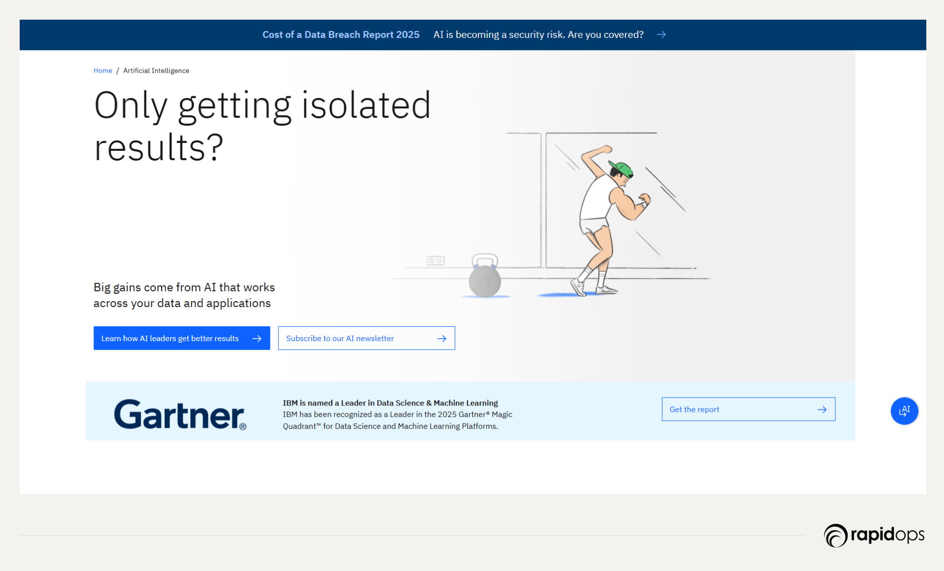 - AI strategy and consulting: IBM helps organizations identify AI opportunities, design actionable strategies, and integrate AI solutions to align with business goals.