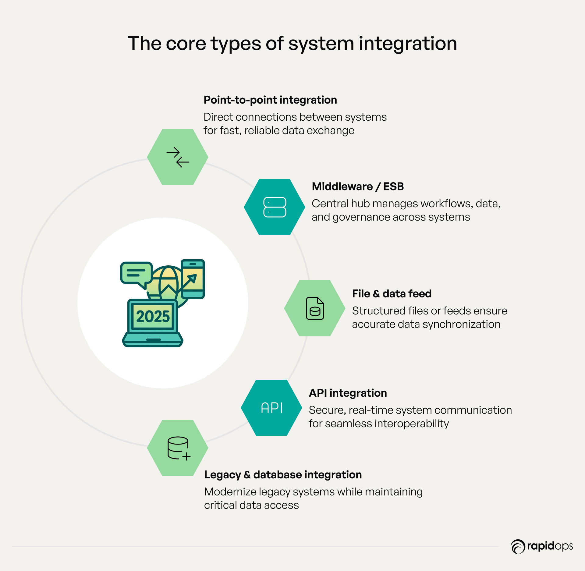 Disconnected systems aren’t just an operational inconvenience anymore; they’re a structural risk. As digital demands accelerate, every delay caused by siloed platforms, inconsistent data formats, or broken connections directly impacts performance and customer experience. This is why modern system integration, whether through point-to-point integration, middleware solutions, enterprise application integration (EAI), data feed integration, or API-based integration, matters more than ever.