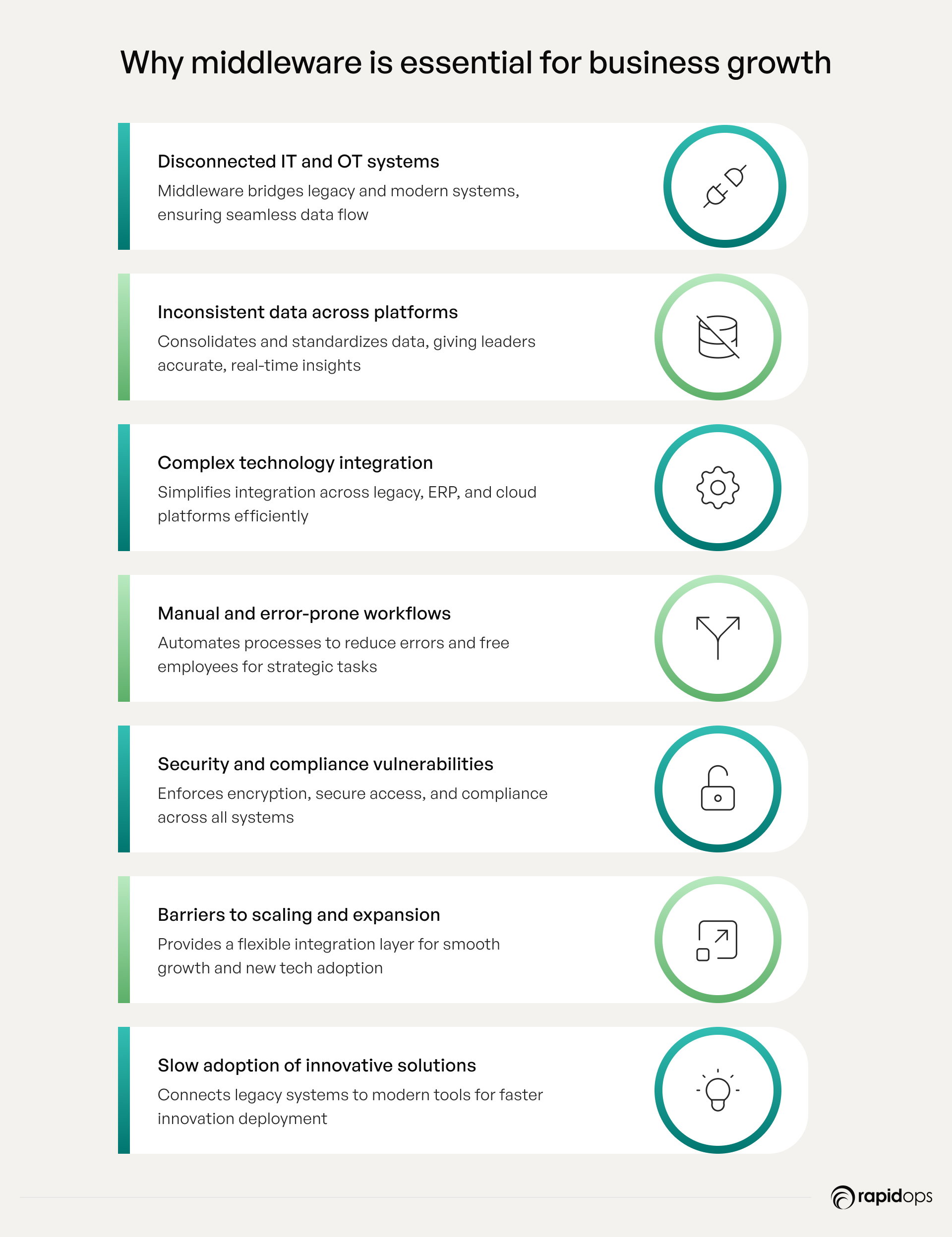 Middleware is essential for connecting disparate systems, reducing manual workload, and enabling data-driven decision-making, making it a foundational component in modern, multi-system IT environments.